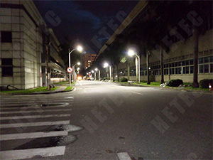 80W LED路燈代替原有250W高壓鈉燈,共計6盞,桿高6米,桿距20米,路面平均照度比原來