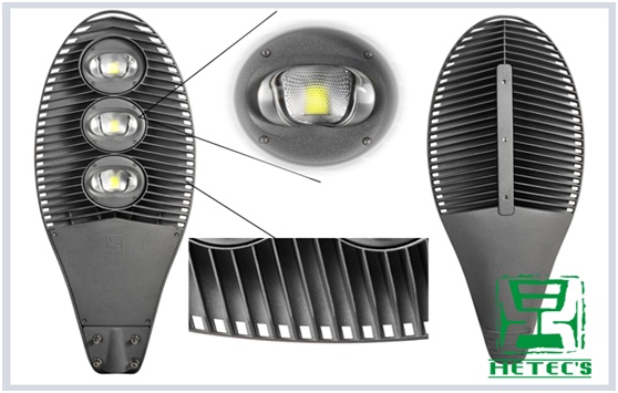 第二,在散熱解決方面,燈殼采用壓鑄鋁合金材料做燈具散熱器,散熱器整體導(dǎo)熱能力比普通鋁合金提高2倍以上,使LED熱量能導(dǎo)得快、散得快,解決了大功率LED燈具的散熱難題;散熱器與燈殼一體化的單片式散熱結(jié)構(gòu),散熱片完全裸露在環(huán)境空氣中,無蓄熱空腔存在,鰭片散熱器結(jié)構(gòu),保證了散熱片與空氣的直接接觸面積,整體設(shè)計(jì)完全保證了鋁基板溫度不超過65℃,燈具溫差不超過50℃。