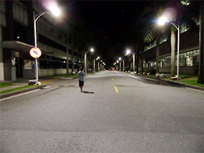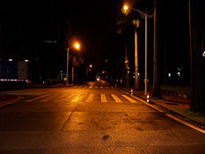 80W LED路燈代替原有250W高壓鈉燈,共計(jì)24盞,桿高6米,桿距20米,路面平均照度比原來用高壓鈉燈照度高出16 lx。