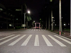 80W LED路燈代替原有250W高壓鈉燈,共計(jì)5盞,桿高6米,桿距20米,路面平均照度比原來用高壓鈉燈照度高出12 lx。